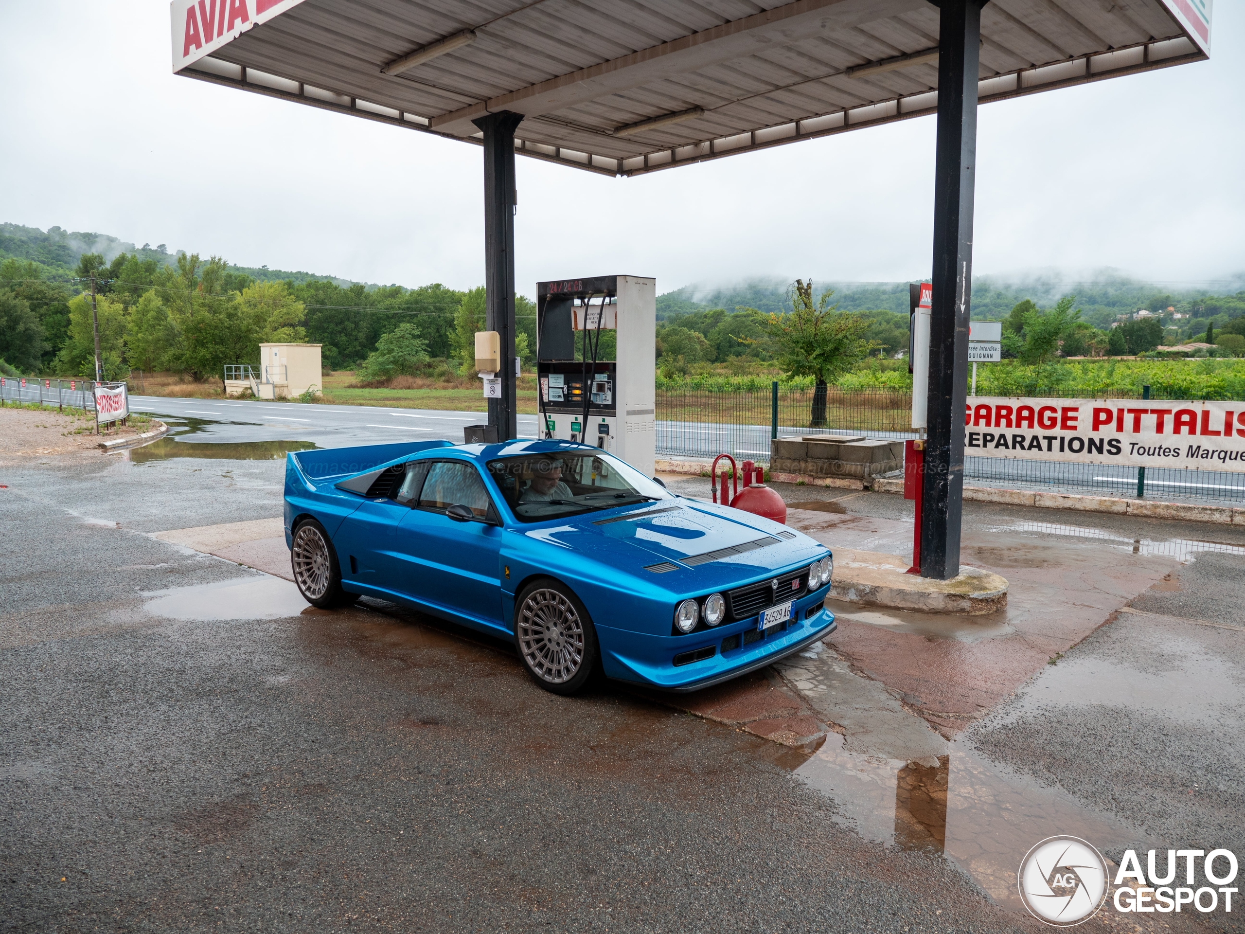 Throwback to my summer holiday in the south of France, September 2024! Unfortunately, it was a rainy and foggy day in September when I drove along the mountain roads near Figanières. I suddenly spotted a small, bright blue car passing me by; before I could blink, I realized it was a Kimera. I immediately recognized it from the documentary I had recently watched on YouTube, featuring Mr. Kimera himself showcasing the factory and the story behind this fantastic restomod! I drove straight ahead for a few seconds, then decided to turn around as quickly as possible to see if I could catch up. After a few minutes, I spotted the old petrol station I had passed earlier in the distance. I thought maybe he needed to stop there, and yes, when I got closer, the guy had just parked the car to refuel. The Italian owner was so nice and friendly; he was very pleased that I knew about the car and its background. He told me he got delivered the car just three weeks ago and had already driven it through the Italian and French mountains. I tried to do my best on some photos, and he showed me the interior. The characteristic petrol station and the foggy clouds made these shots very special for me; you never expect this kind of car in such circumstances.