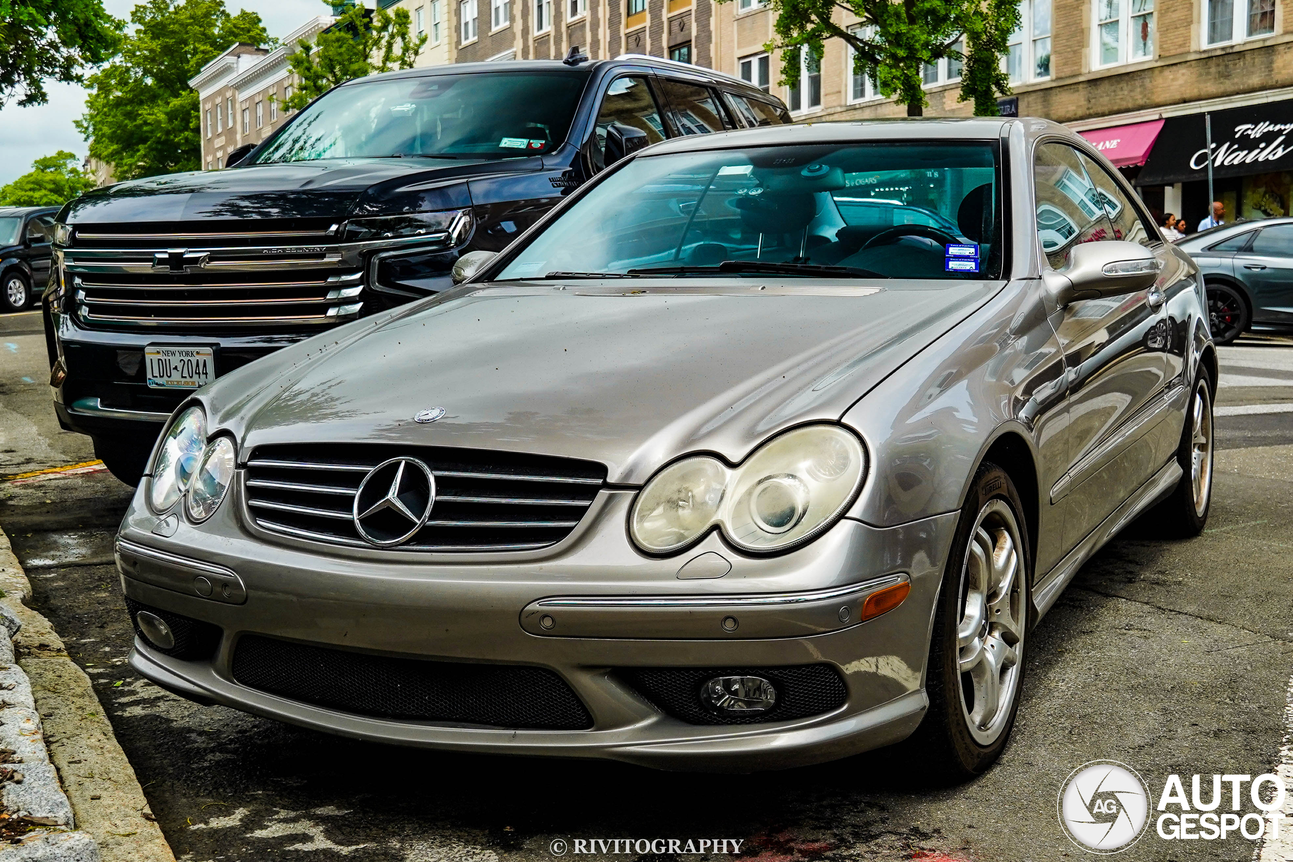 I found this 2004 Mercedes-Benz CLK 55 AMG parked on Greenwich Avenue on 5/27/2024.