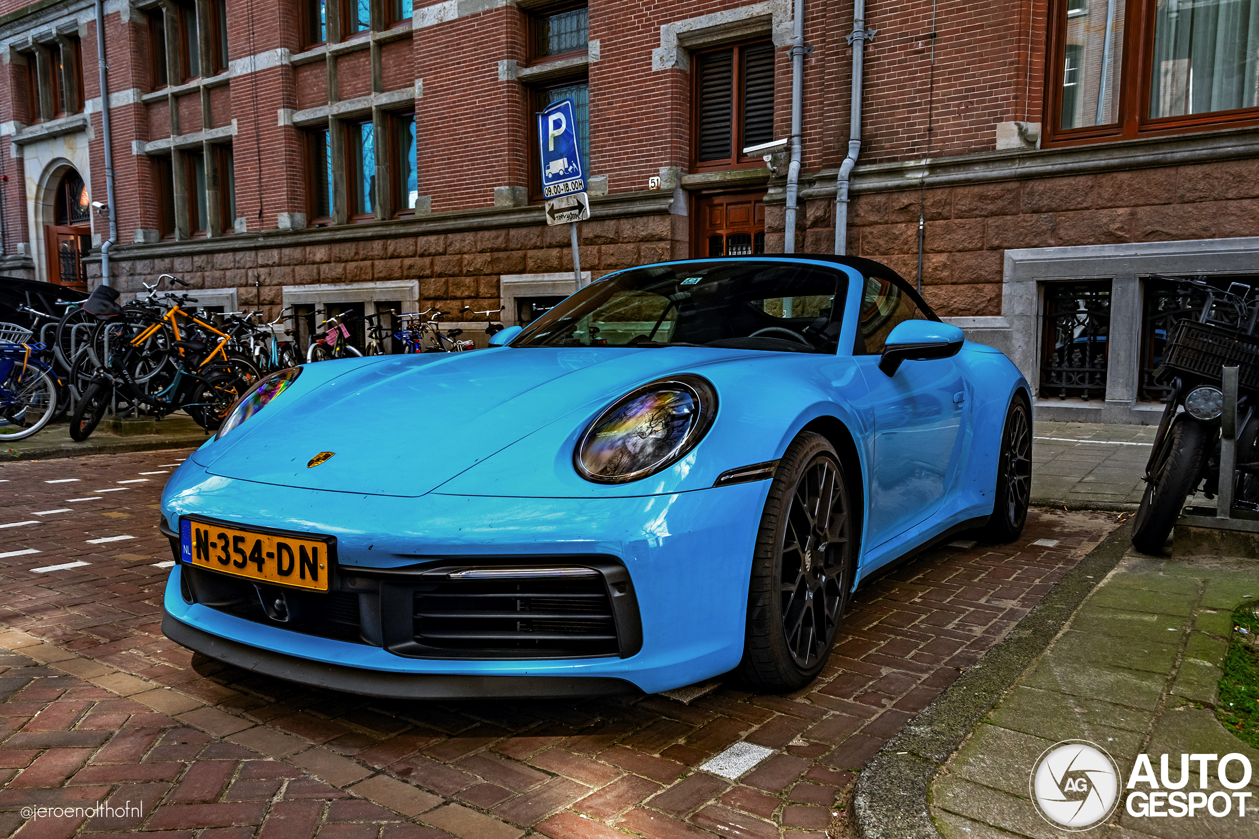 Deze 992 uit januari 2020 is nog nooit op de site gezet. Toen ik hem vorig jaar in Knokke zag, verbaasde me ik daar al over. Destijds kon ik niet genoeg foto's maken, dus ik was erg content dat ik dit blauwe exemplaar in Amsterdam tegenkwam. In Knokke kwam de waanzinnige kleur beter tot z'n recht dan in de schaduw van de Jan Luijkenstraat.