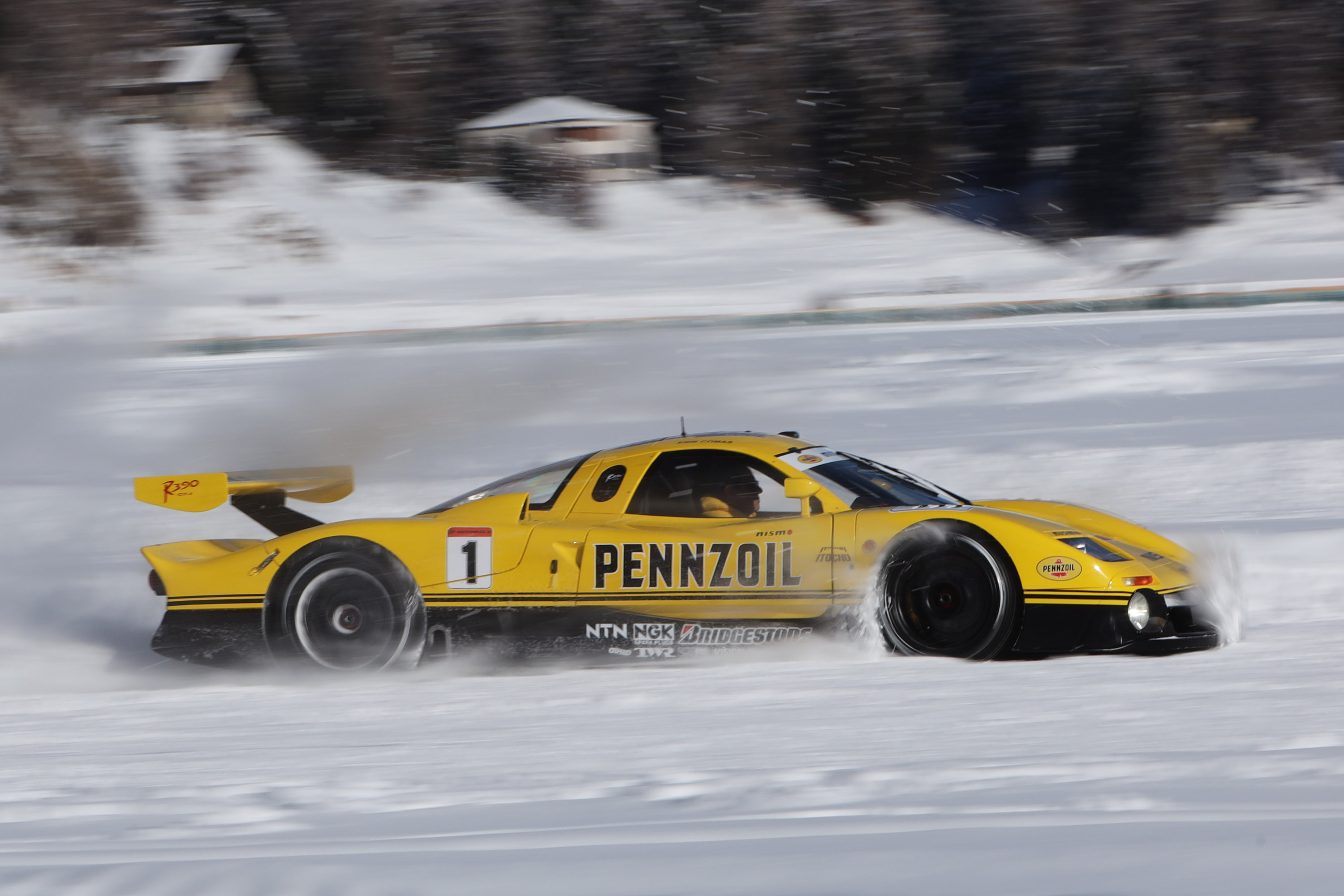 Eines stach besonders hervor: der Nissan R390 GT1, im Besitz von niemand Geringerem als dem ehemaligen Formel-1 und Le-Mans-Fahrer Érik Comas. Sein R390, stolz in der ikonischen Pennzoil Lackierung, wurde bereits 1997 straßenzugelassen. Comas fuhr den R390 GT1 1997 und 1998 in Le Mans - und fast drei Jahrzehnte später bewegte er einen davon über einen zugefrorenen See in der Schweiz. Allein das ist schon verrückt.