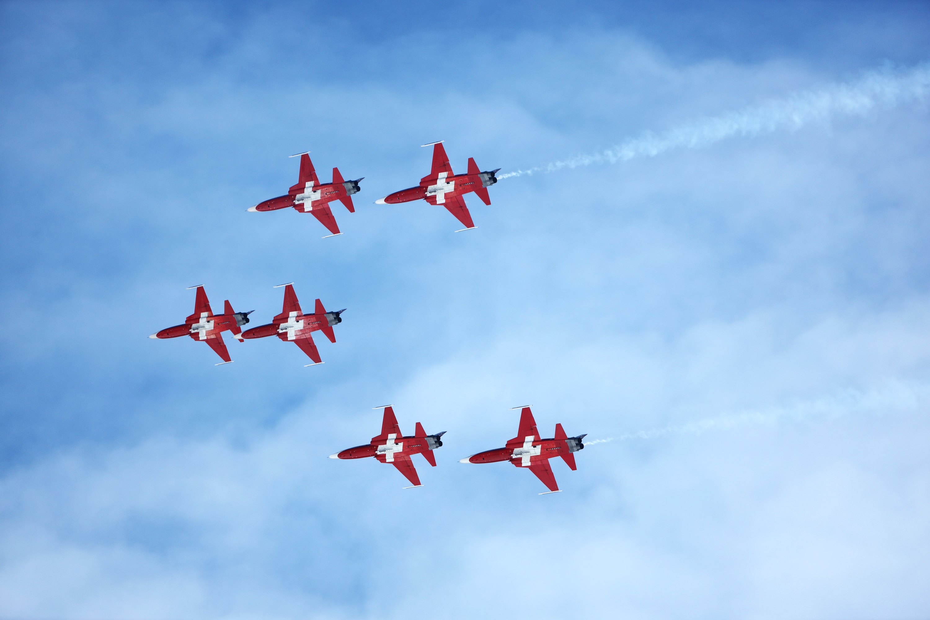 Die Action spielte sich nicht nur am Boden ab. Über unseren Köpfen erlebten wir eine atemberaubende Vorführung der Patrouille Suisse, die ihre F-5 Tiger Jets in engen Formationen fliegen ließ. Es war schlicht spektakulär.